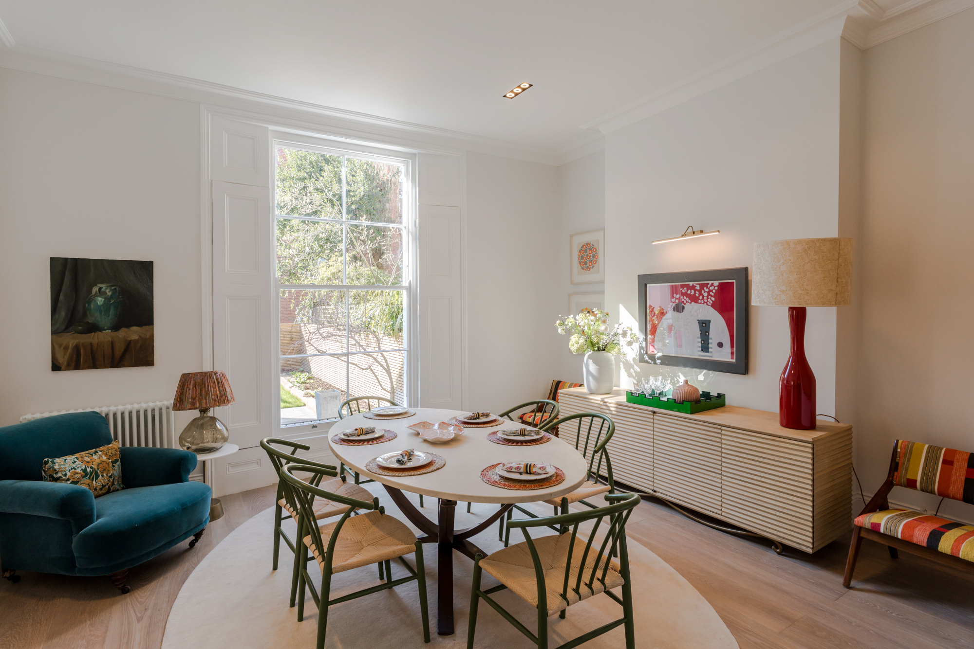 The ground floor consists of an impressive entertaining area, with a beautiful dining and reception room as well as a stunning kitchen which opens out on to the garden.