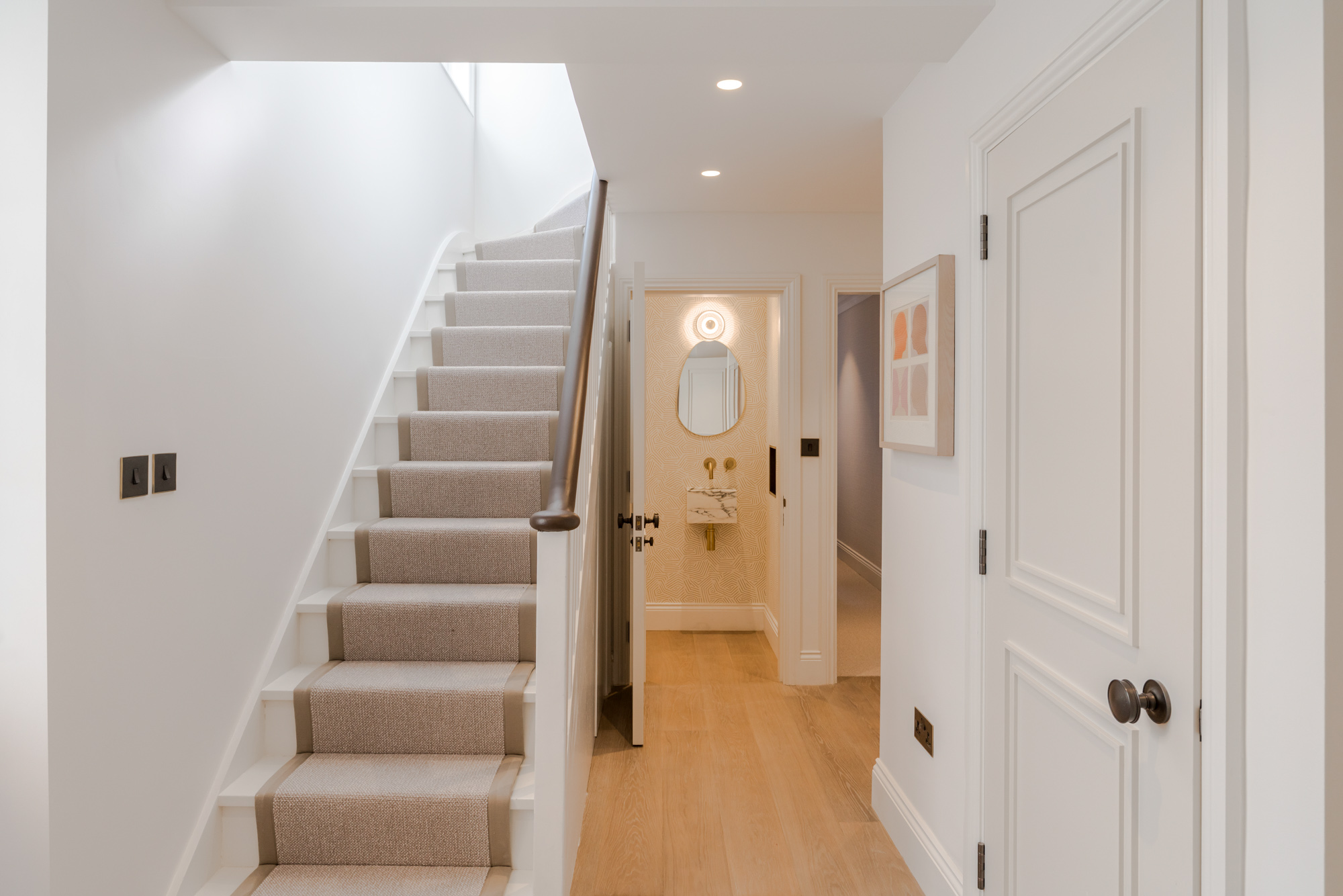 The lower-ground floor consists of a principal bedroom, en suite bathroom and dressing room with access to a private terrace, as well as two further bedrooms and family bathroom.