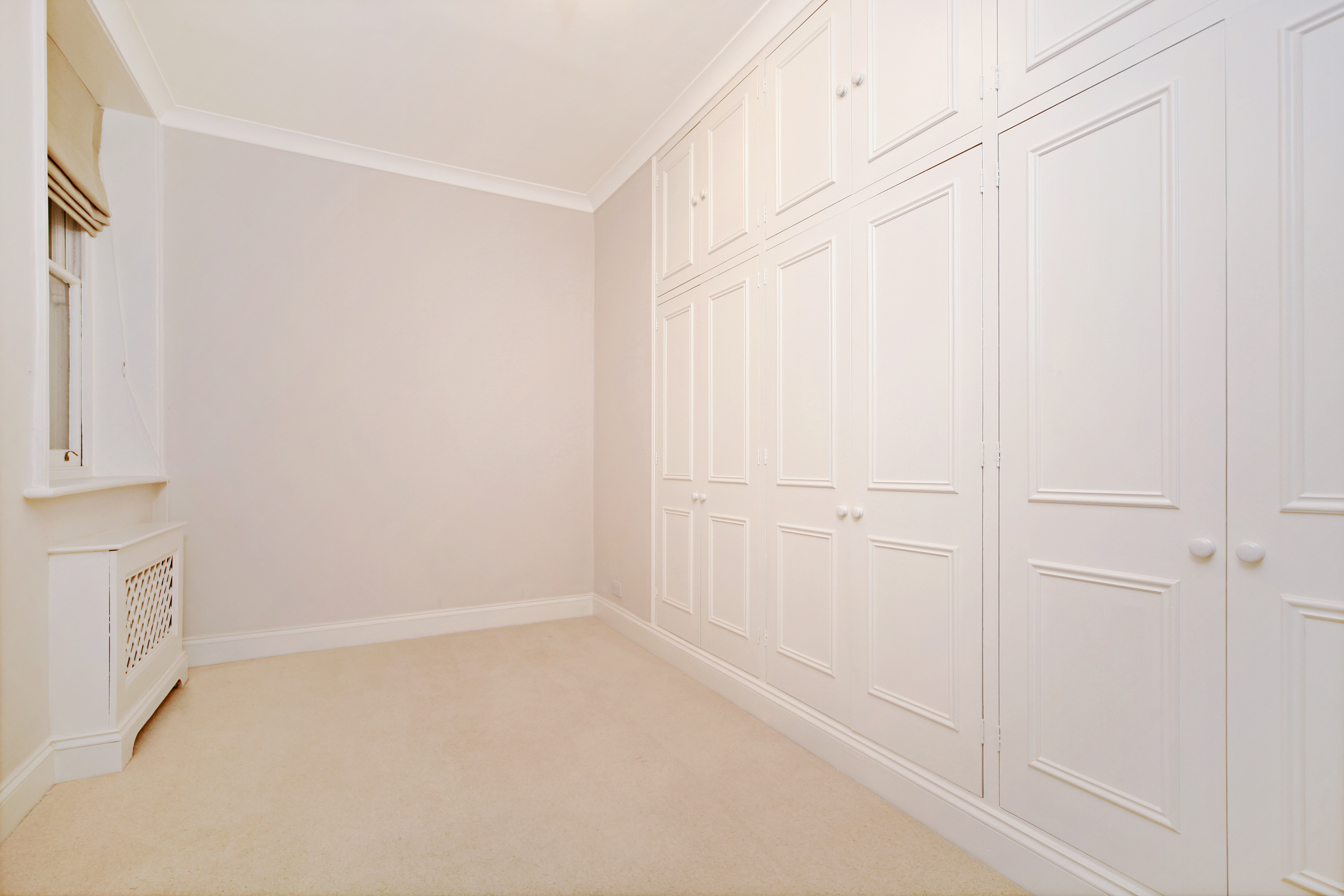The apartment is located on the ground floor of this impressive Victorian portered mansion block, with entrance through a gated courtyard.